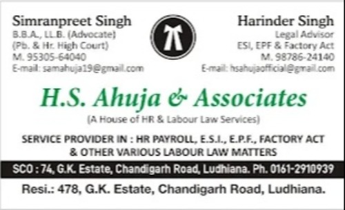H.S.Ahuja & Associates are a leading Labour Laws Advisor and ESI PF consultant in the Ludhiana region, providing a full suite of services to ensure your business remains compliant with all labor laws. We specialize in the efficiently handling and maintenance of statutory records, offering expert guidance on ESI, PF, Factories Act, Labour Act, Minimum Wages Act, and Bonus Act. Our services also include comprehensive payroll processing, statutory audits, HR policy documentation, and acting as a liaison with government authorities. We streamline complex compliance requirements, allowing you to focus on your core business operations with complete peace of mind.